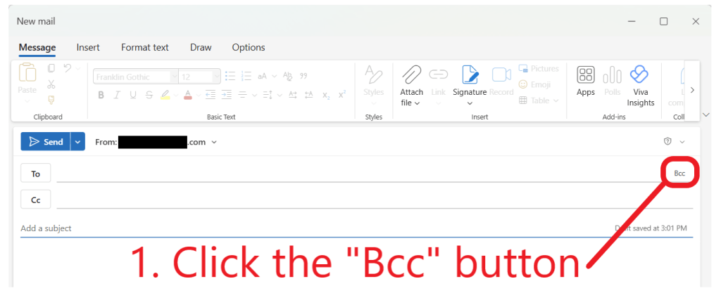 1. Enable the “Bcc” aka “Blind Carbon Copy” functionality which will not allow any of the other recipients to see who else this email was sent to, furthermore they cannot “reply all” on their response, it only goes to you.